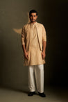 GOLDEN BEIGE LONG KURTA SET WITH SHORT JACKET
