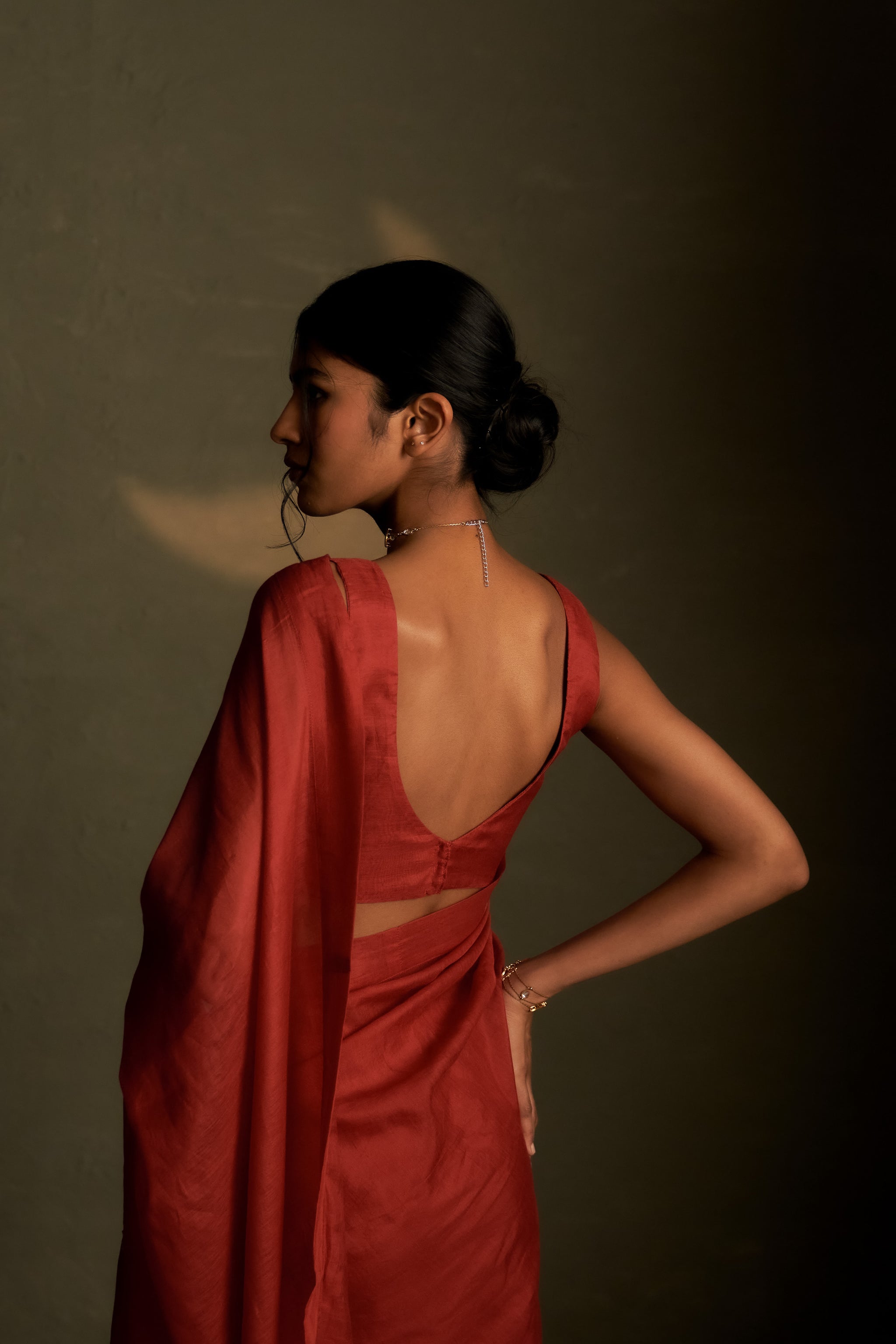 CHAAND SAREE WITH SLEEVELESS BLOUSE